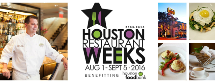- When making your reservations, be sure to tell them that you would like the Houston Restaurant Weeks special menu. This will let the restaurant know to make a donation to the Food Bank from the proceeds of your meal.
