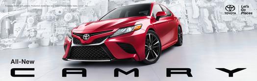The 2018 Toyota Camry – with its new TNGA platform, double-wishbone style multi-link rear suspension, and stylish design – has a sleeker profile that offers improved aerodynamics, a lower center of gravity, and a more rigid body, allowing for a more comfortable and stable ride. In addition, engineers incorporated a number of new noise, vibration and harshness (NVH) countermeasures that were previously found exclusively on luxury models such as sound-absorbing insulation in the hood and upper and lower fender separator, as well as foam/vibration dampening materials throughout the vehicle. The driver-focused design also features the highest grade of soft touch and premium materials on all surfaces of the cabin.